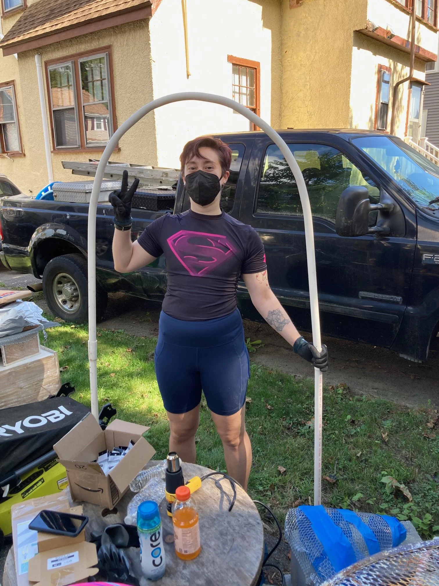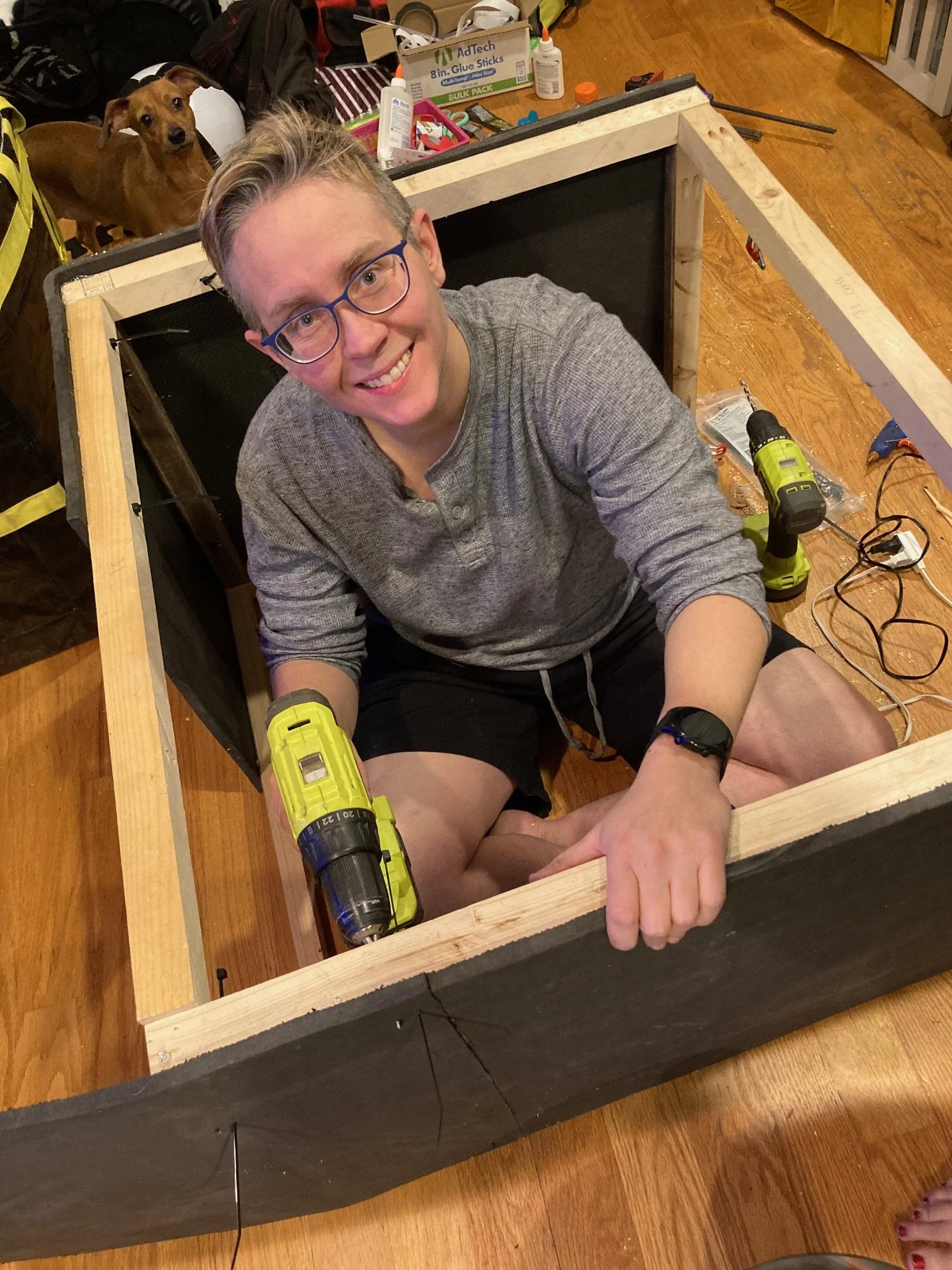 Enjoy the photos of times when folks came to my house and we made costumes and props, which included me teaching them various crafting skills and using my tools and upcycled materials.