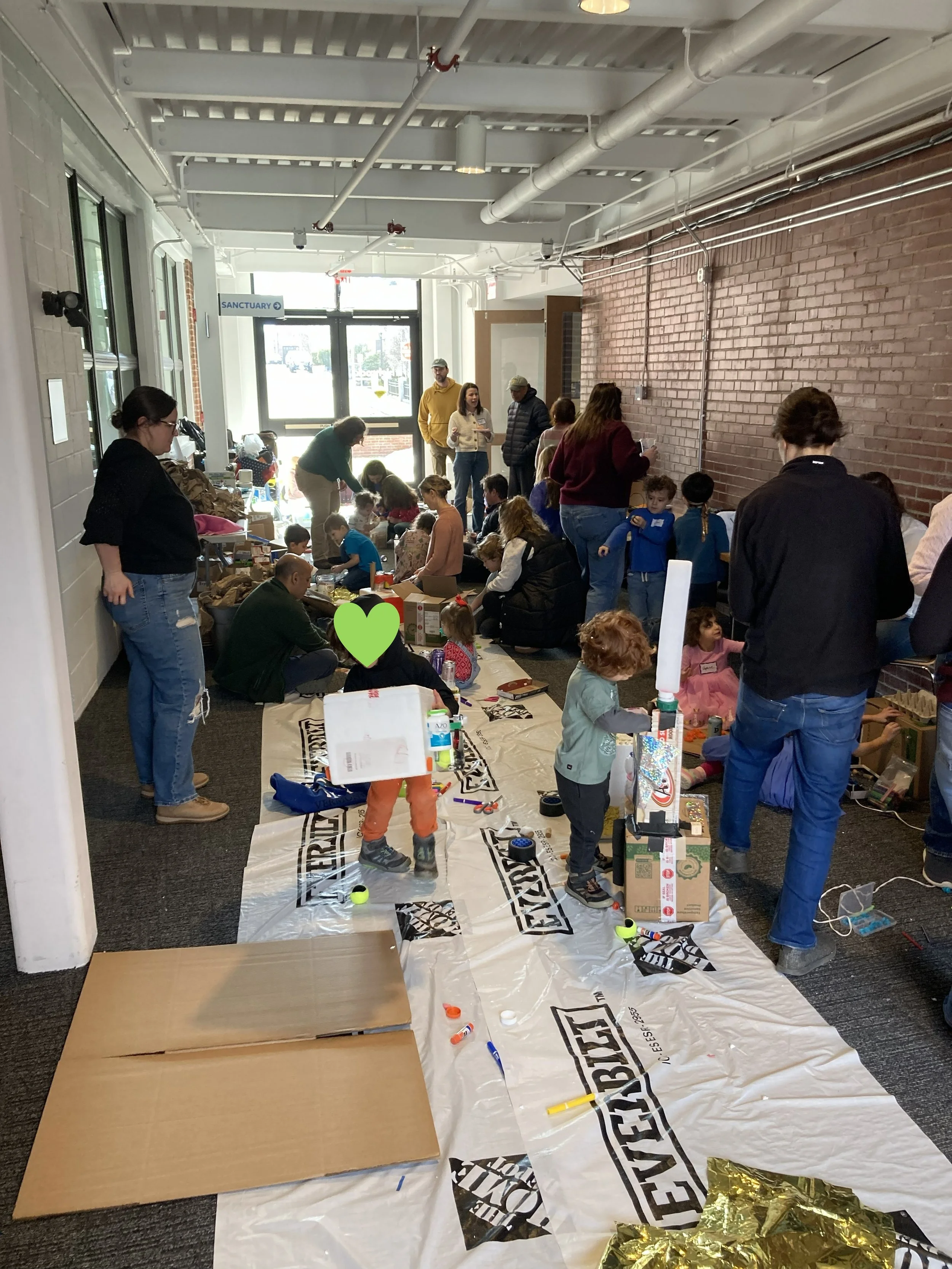 At his upcycled build party, he and his friends used all kinds of reclaimed materials to dream up and construct their own little city—skyscrapers, neighborhoods, and plenty of wonderfully mysterious structures that only kids could invent. Watching them let their imaginations run wild was pretty magical.